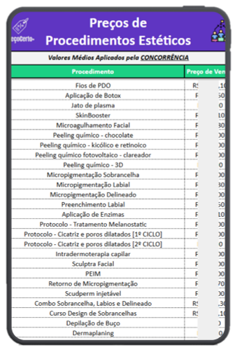 - ✓ Tabela Secreta com Preço Médio da Concorrência - por Procedimento